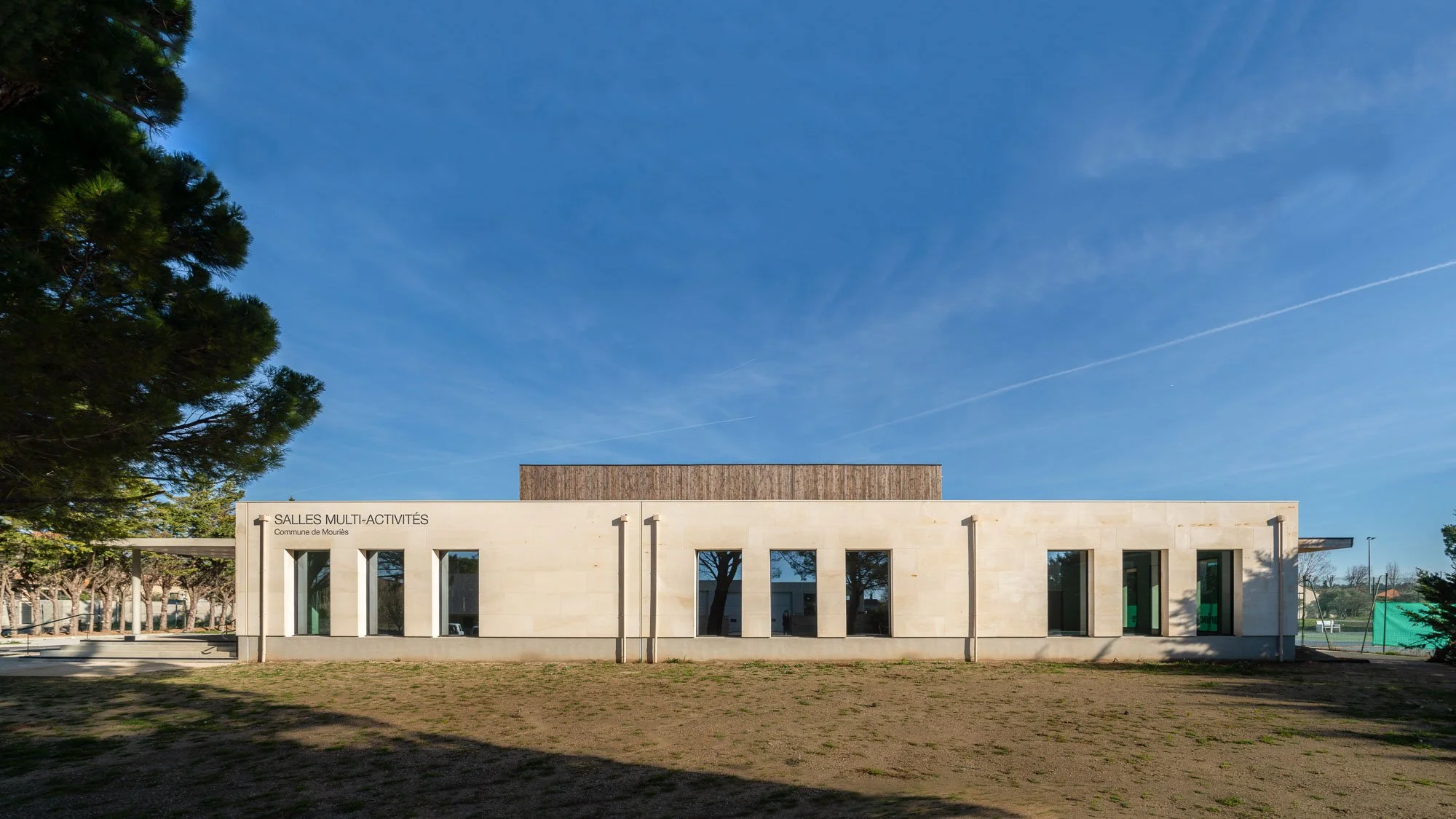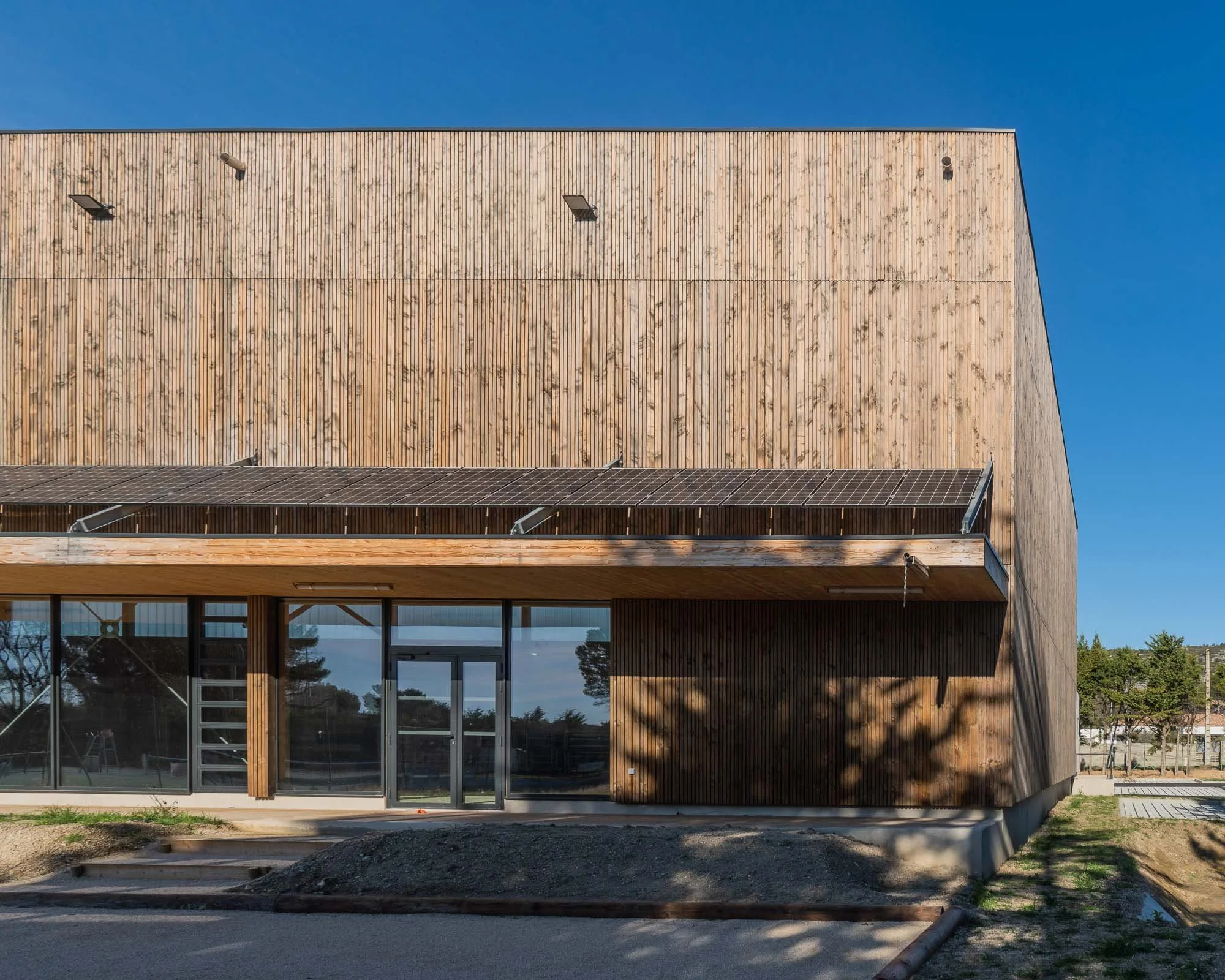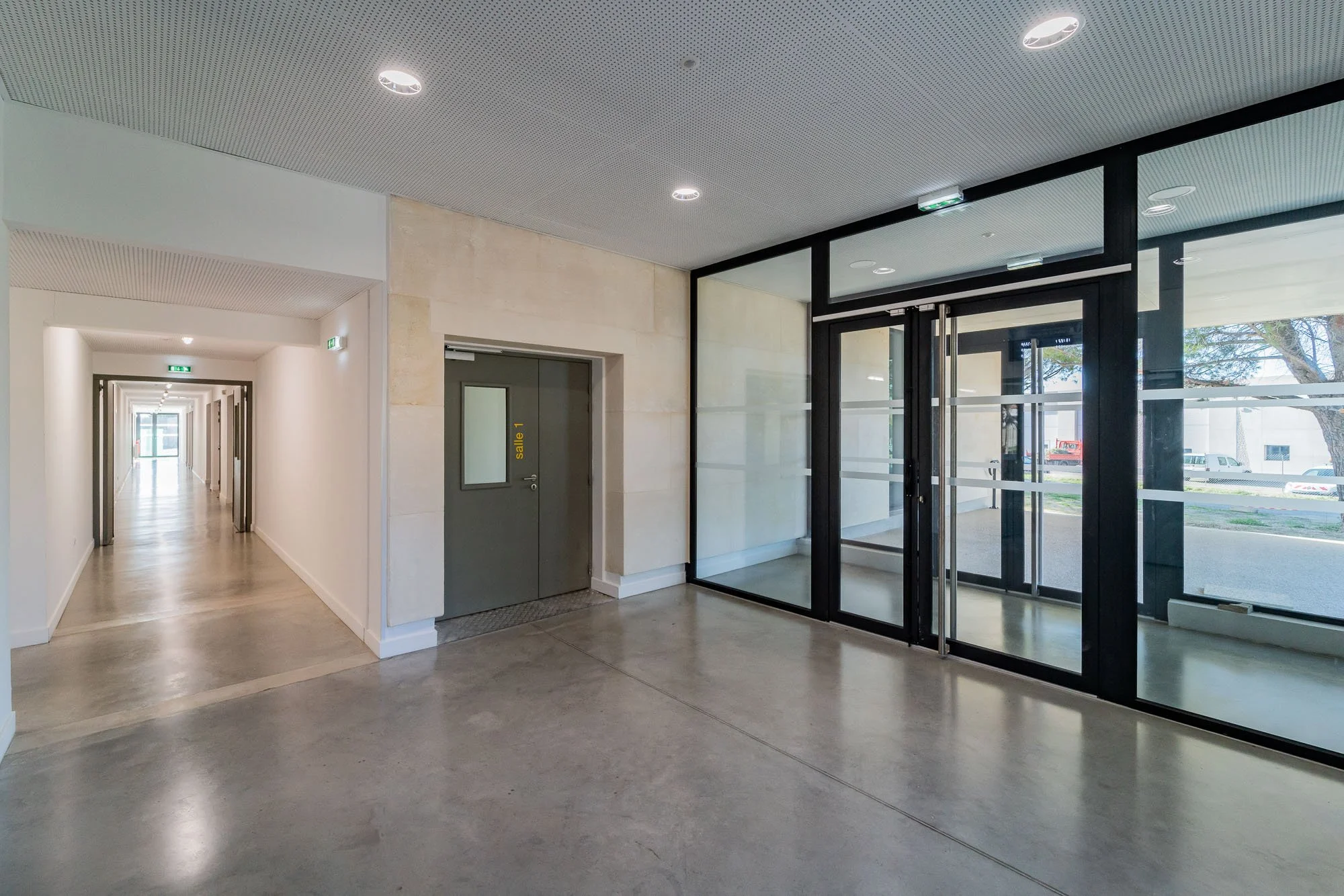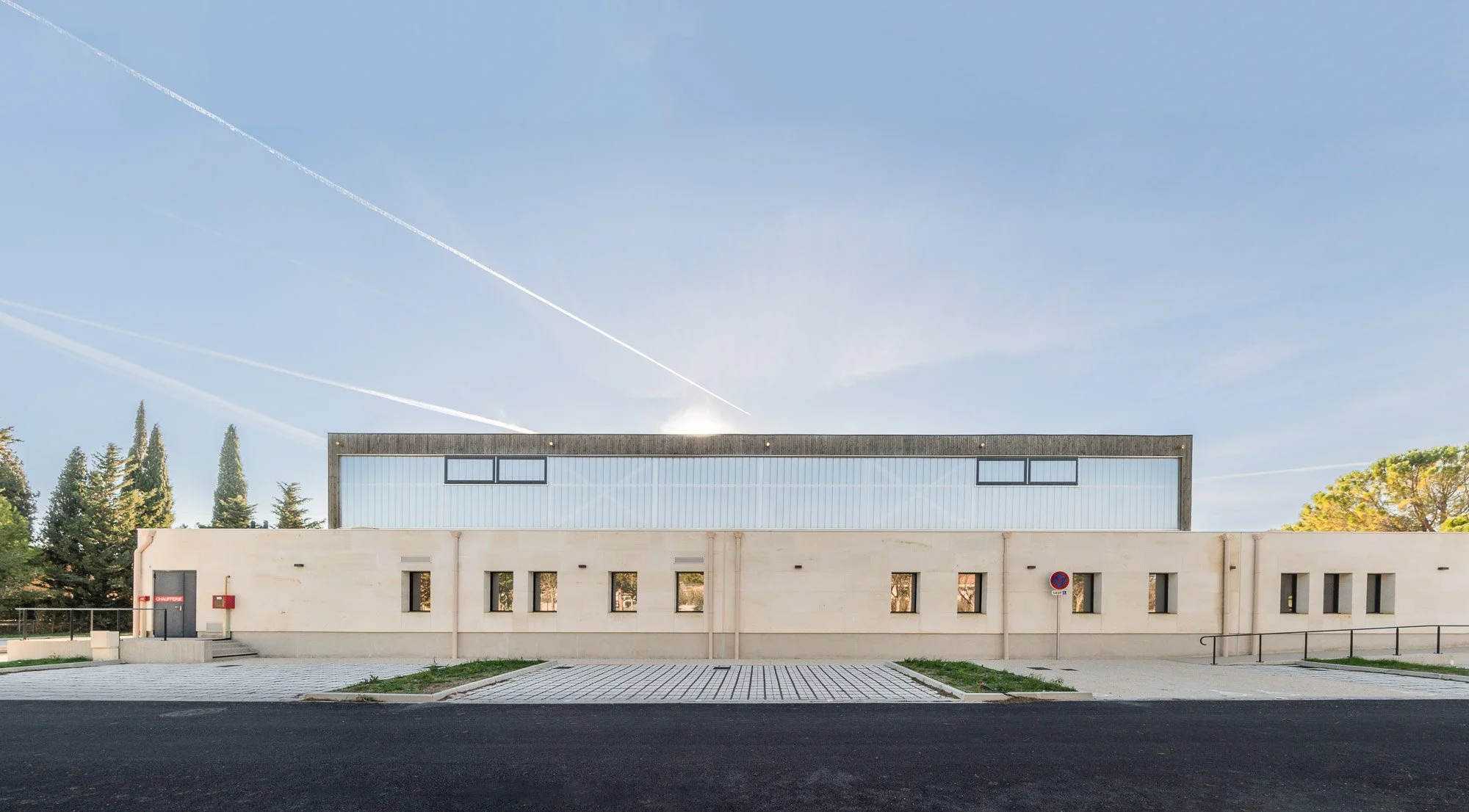 Caractéristiques Bâtiment en pierre de Beaulieu et ossature et bardage bois, Panneaux photovoltaïques, Isolation biosourcée, Acoustique soignée, Ventilation Naturelle Intelligente