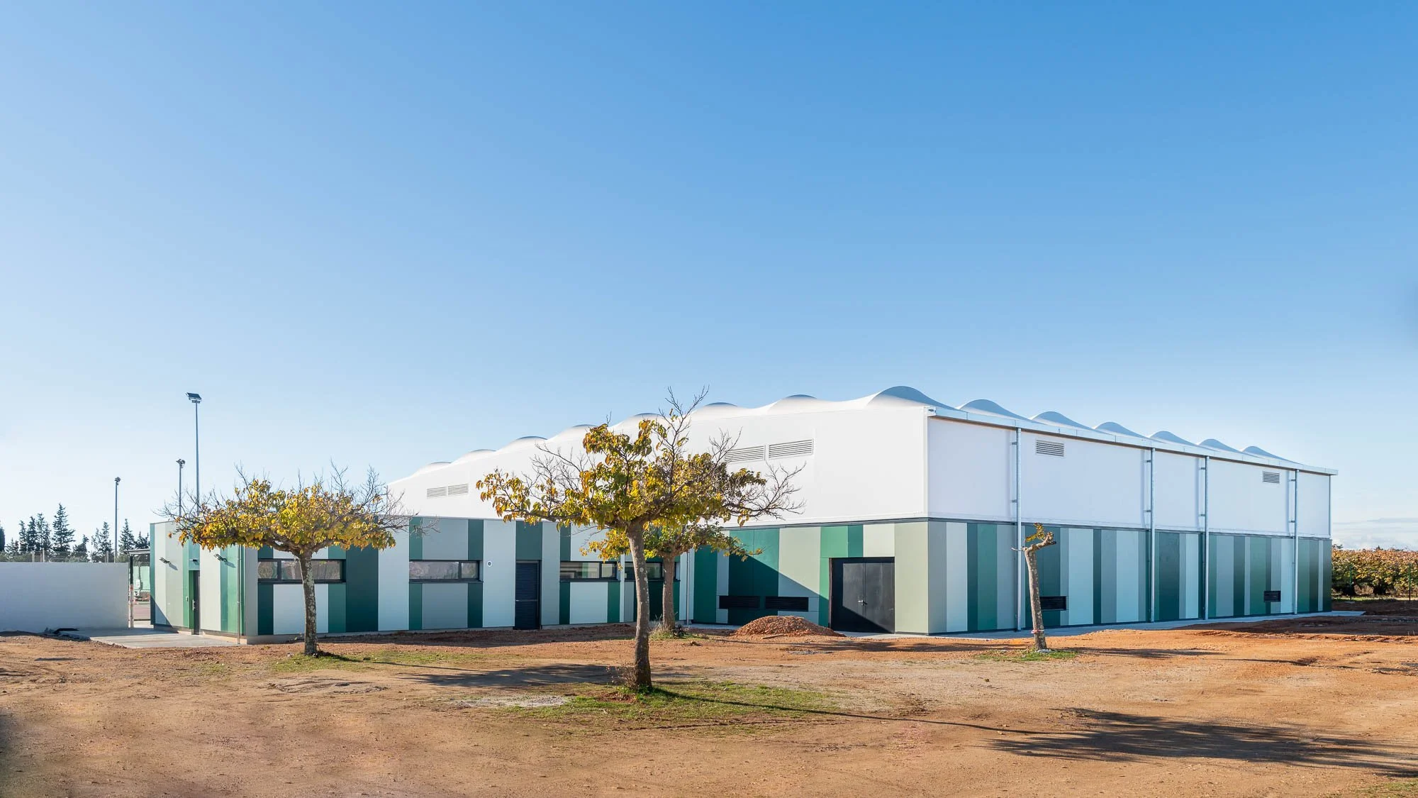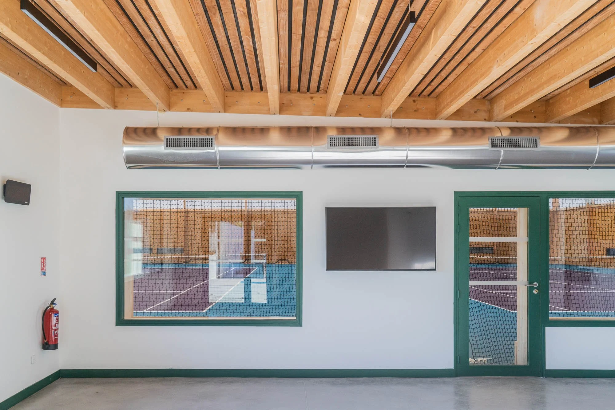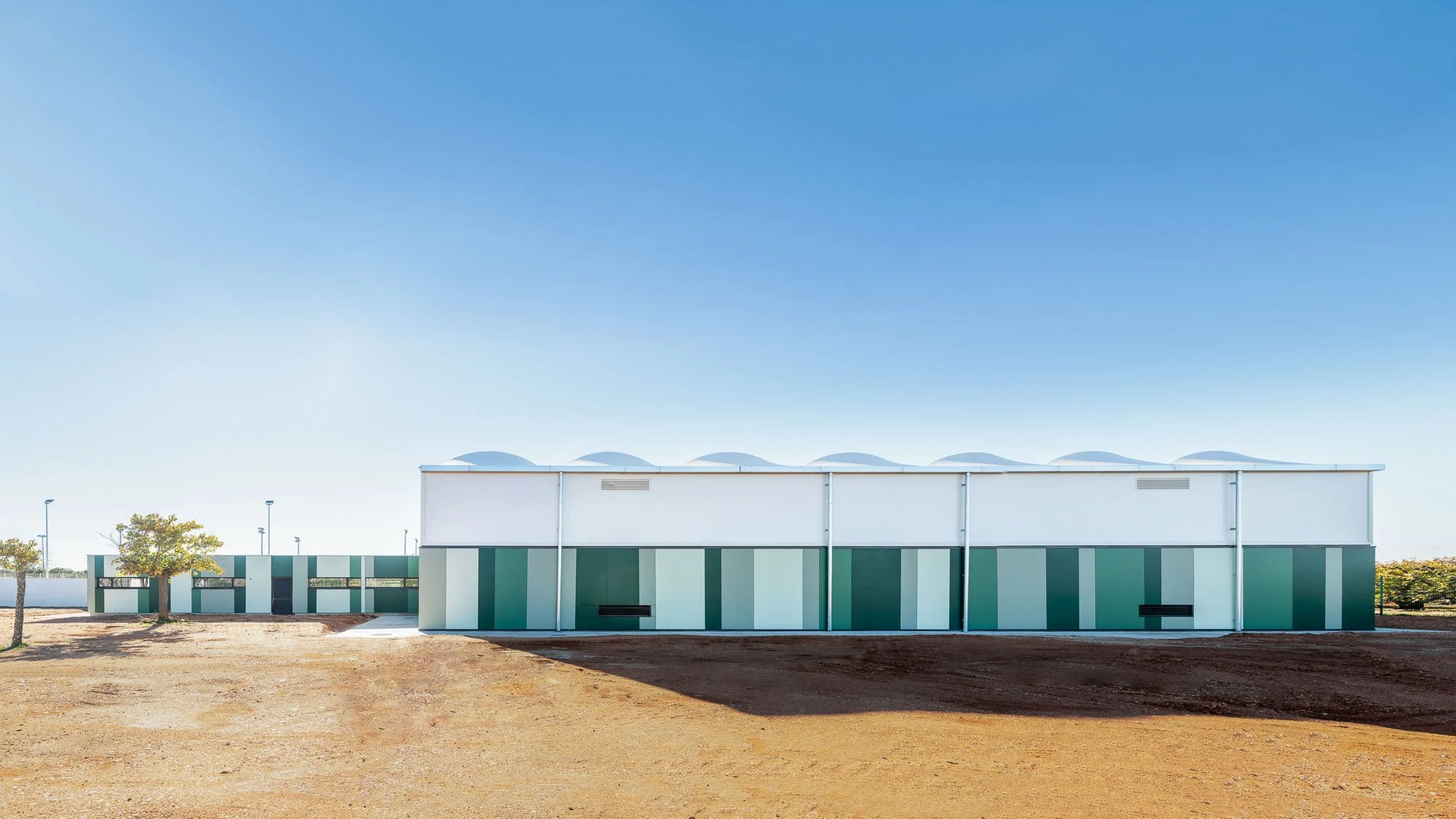 Caractéristiques Bâtiment en ossature et bardage bois et panneaux HPL, Toiture en toile, Isolation biosourcée, Acoustique soignée
